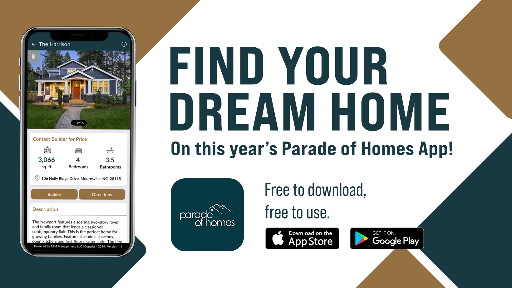 As the Charlotte Region’s largest open house, the tour highlights innovative design, craftsmanship, and the latest trends. The Parade features all types of homes including townhomes, active adult communities, luxury living, casual entertaining options, and everything in between. Whether you’re looking to buy a new home now or just looking for inspiration – there’s something for everyone in the Parade of Homes.