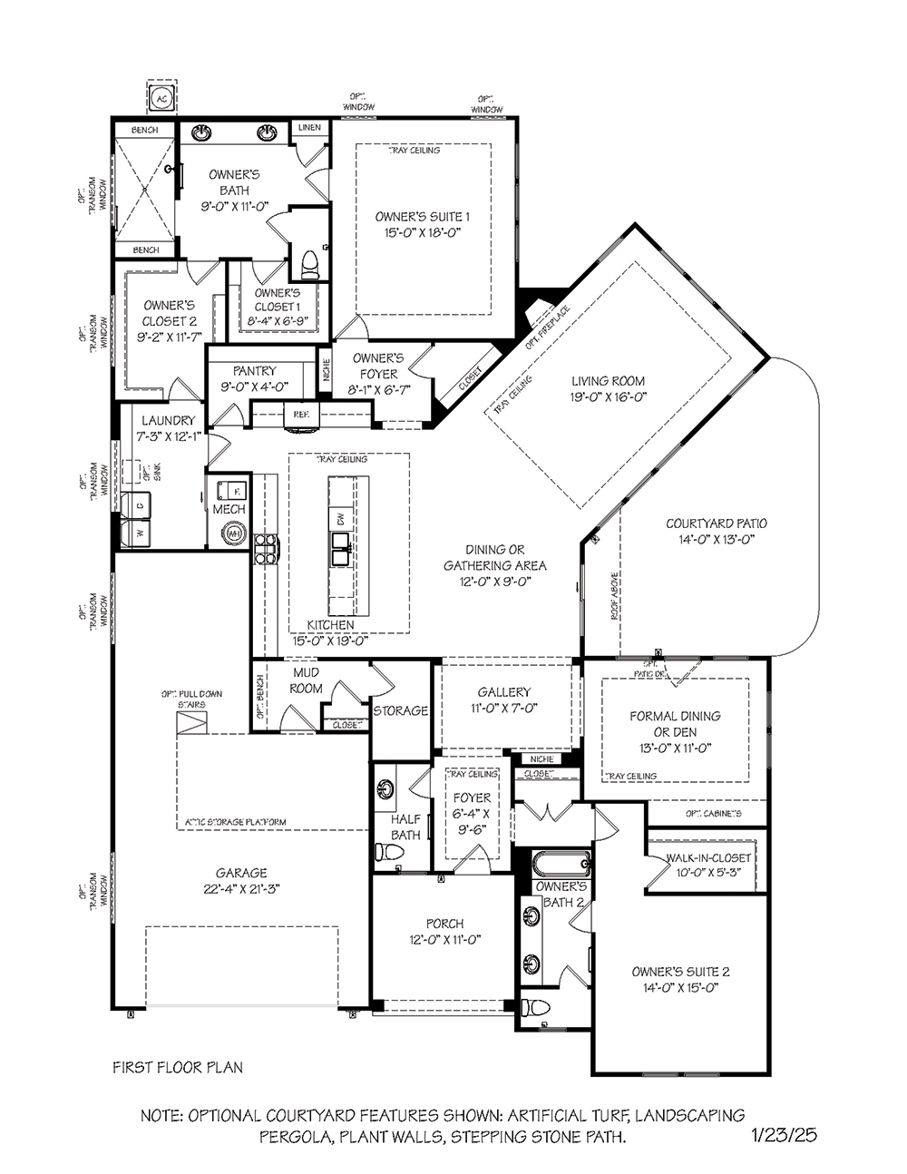 Central courtyard located in the heart of the home with multiple access points and views from main living areas and the owner’s suite.