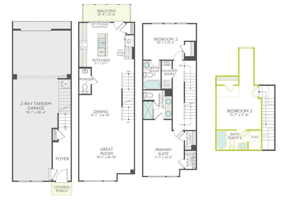 Extra-large, 2-bay tandem garage provides ample storage where it counts and multipurpose space.