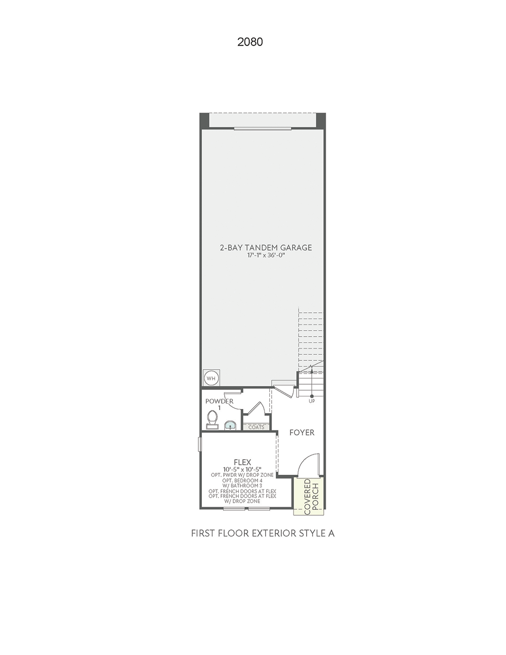 On the first-floor of the home find either a bonus room with French doors and half bath or pick the guest suite option with a bedroom and full bath.
